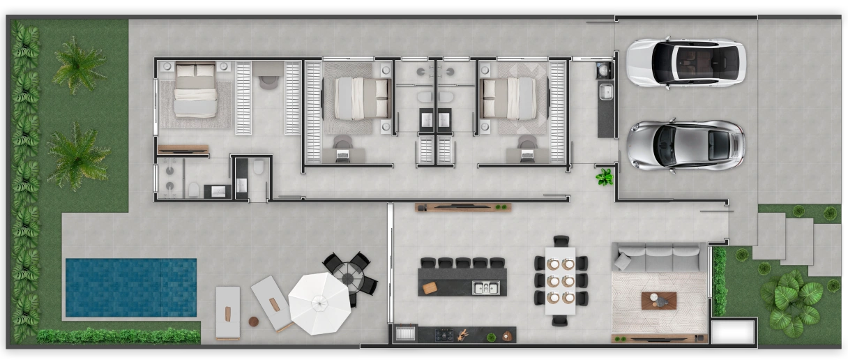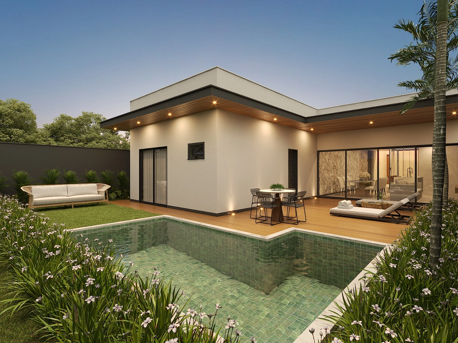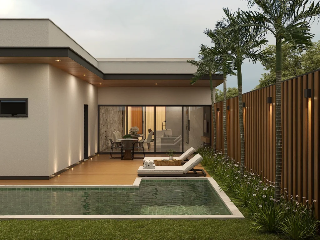 O lazer é um dos grandes diferenciais desta casa, que oferece uma piscina privativa com solarium, perfeita para relaxar e aproveitar os dias ensolarados. Para maior comodidade, a propriedade conta ainda com área de serviço independente e 02 vagas de garagem paralelas, garantindo praticidade no dia a dia. Se você busca um imóvel pronto para morar, com qualidade construtiva e design moderno, a Casa Hayashi 7 – Quadra 7 é a escolha certa para viver bem e investir com segurança.