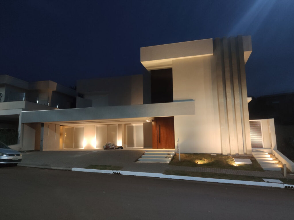 Sinônimo de grandiosidade e requinte, esta residência localizada no exclusivo Condomínio Mont Blanc, na Avenida Guedner, é um dos destaques do portfólio de alto padrão da Cétre Engenharia. Com uma área construída de 476,82 m², trata-se de um projeto térreo desafiador e imponente, que ocupa o terreno com inteligência para proporcionar luxo e conforto em um único pavimento. A localização na Gleba Patrimônio Maringá reforça o caráter nobre da edificação, que foi executada para ser referência estética e estrutural dentro do condomínio.